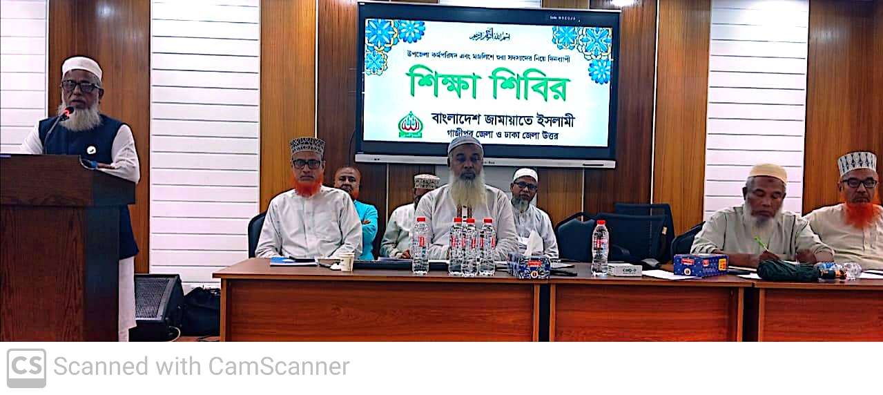 আজ (১২ অক্টোবর) শনিবার সকাল ৭:৩০ টায় গাজীপুরের স্থানীয় একটি হলরুমে বাংলাদেশ জামায়াতে ইসলামী ঢাকা জেলা উত্তর ও গাজীপুর জেলার যৌথ উদ্যোগে দায়িত্বশীল শিক্ষাশিবির অনুষ্ঠিত হয়। সভায় সভাপতিত্ব করেন বাংলাদেশ জামায়াতে ইসলামীর কেন্দ্রীয় মজলিসে শুরা সদস্য ও ঢাকা জেলা উত্তরের আমীর মাওলানা আফজাল হোসেন। বিশেষ অতিথি হিসেবে উপস্থিত ছিলেন ঢাকা মহানগর দক্ষিণের আমীর নুরুল ইসলাম বুলবুল, ঢাকা মহানগর উত্তরের সেক্রেটারি ড. রেজাউল করিম ও ঢাকা উত্তর অঞ্চলের টীম সদস্য মাওলানা দেলোয়ার হোসেন।