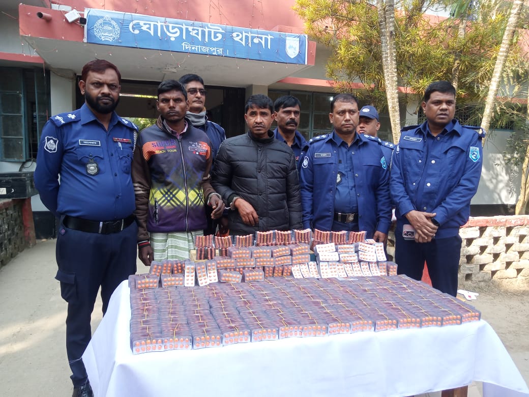 এ বিষয়ে ঘোড়াঘাট থানার ভারপ্রাপ্ত কর্মকর্তা (ওসি) নাজমুল হক সকাল ১১ টায় প্রেস বিজ্ঞপ্তির মাধ্যমে নিশ্চিত করে জানান , গোপন সংবাদের ভিত্তিতে ঘোড়াঘাট উপজেলার কামদিয়া রোড দিয়ে মাদকের বড় একটি চালান প্রবেশ করবে। এমন সংবাদের ভিত্তিতে থানা পুলিশের একটি টহল দল চেক পোস্ট বসিয়ে ২২ হাজার পিচ নিষিদ্ধ ট্যাবলেট ট্যাপেন্টাডল সহ দুই মাদক কারবারিকে আটক করা হয়।