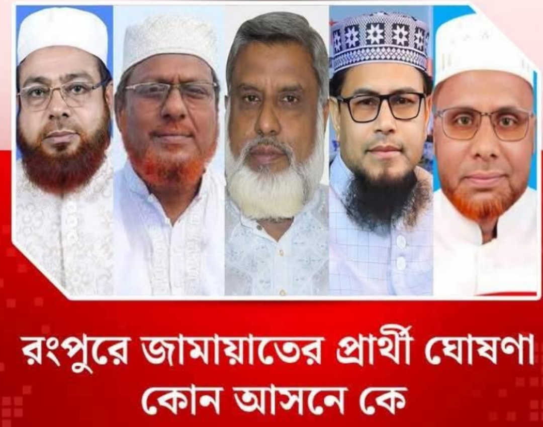 ঘোষিত আসনের প্রার্থীরা হলেন- গংগাচড়া ও সিটি করপোরেশনের আংশিক নিয়ে রংপুর-১ আসনে প্রার্থী মহানগর জামায়াতের সহকারী সেক্রেটারি অধ্যাপক রায়হান সিরাজী, রংপুর-৩ (সদর) আসনে জামায়াতের কেন্দ্রীয় কর্মপরিষদ সদস্য অধ্যাপক মাহবুবার রহমান বেলাল, রংপুর-৪ (পীরগাছা-কাউনিয়া) আসনে মহানগর জামায়াতের আমির এটিএম আজম খান, রংপুর-৫ (মিঠাপুকুর) আসনে জেলা জামায়াতের আমির গোলাম রব্বানী, রংপুর-৬ (পীরগঞ্জ-৬) আসনে সহকারী অধ্যাপক মাওলানা মো. নুরুল আমিনের নাম ঘোষণা করা হয়েছে। মাওলানা মো. নুরুল আমিন সাবেক ছাত্র নেতা ও বাংলাদেশ মাজলিসুল মুফাসসিরিনের কেন্দ্রীয় কমিটির সাধারণ সম্পাদক।