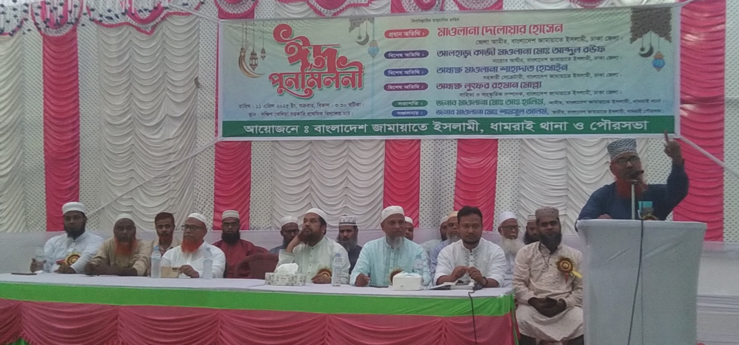 বাংলাদেশ জামায়াতে ইসলামী ধামরাই ও ধামরাই পৌর জামায়াতে ইসলামীর উদ্যোগে ঈদ পুনর্মিলনী অনুষ্ঠান অনুষ্ঠিত হয়েছে।