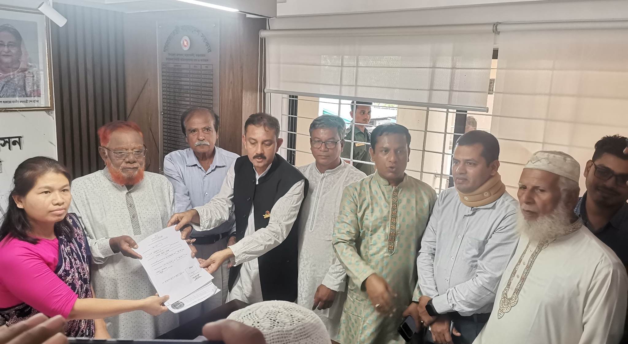 জেলা আওয়ামী লীগের সাধারণ সম্পাদক মুজিবুর রহমান ও উপজেলা আওয়ামীলীগের সভাপতি, পৌর মেয়র আলহাজ্ব মকসুদ মিয়া'কে সাথে নিয়ে উপজেলা নির্বাহী অফিসার ও সহকারী রির্টানিং বিমলেন্দু কিশোর পাল কাছে তাঁর মনোনয়নপত্র দাখিল করেছেন।